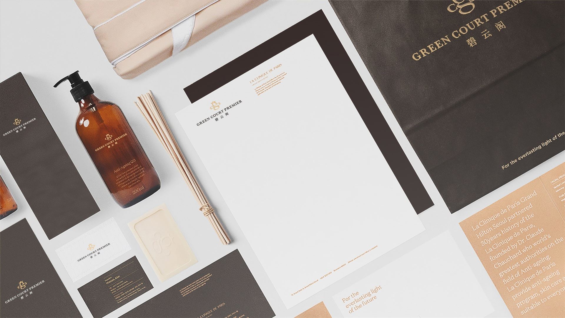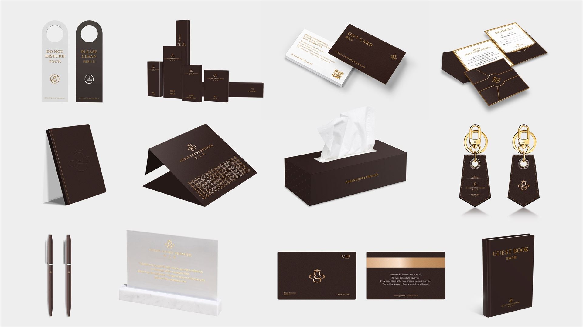 标志图形通过提炼英文品牌名首字母 “G”、“C”的品牌基因,构成奢华蜜蜂的符号,j9九游会象征碧云阁给予客户无微不至的服务和奉献精神。同时寓意碧云阁内部员工的勤劳素养及亲和形象。蜜蜂代表勤劳,服务;占位蜜蜂,即占位酒店服务。
